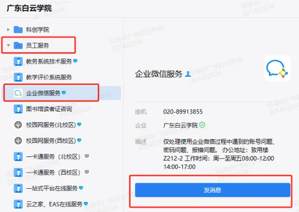 企业微信-通讯录-员工服务-“企业微信服务”专窗