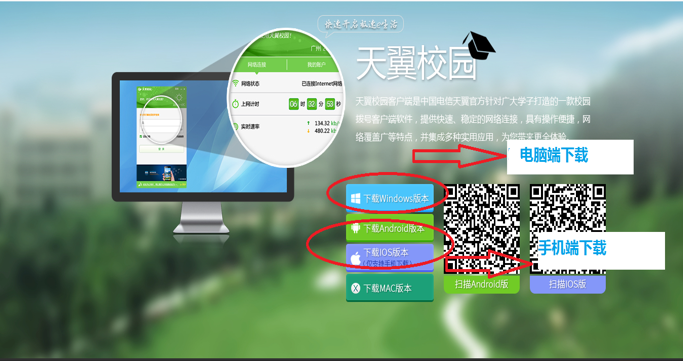 用电信提供的帐号和密码在区域1登录(因帐号较长请勿输入错误勿操作),如无法登录请执行上图中的第二步下载客户端。