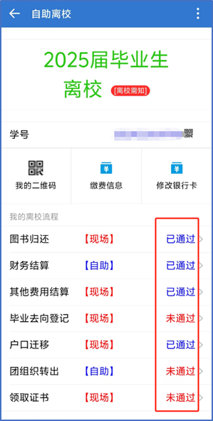 学生通过数字离校办理通道查看办理状态是否已更新。