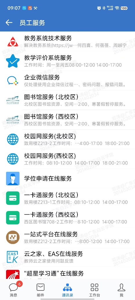 教育技术中心一手包办校园里的信息化那些事儿,我们在北校区和西校区都设有据点(北校区:致用楼213,西校区:图书馆709),随时待命。我们的服务团队24小时驻扎在“企业微信—通讯录—员工服务”的在线窗口,全天候在线候命随时戳窗口,我们都在!大家找准对应窗口。