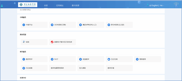 登录成功后进入系统主界面,点击指定的系统即可直接访问(在校外也可访问原本只能在校内访问的信息资源)。